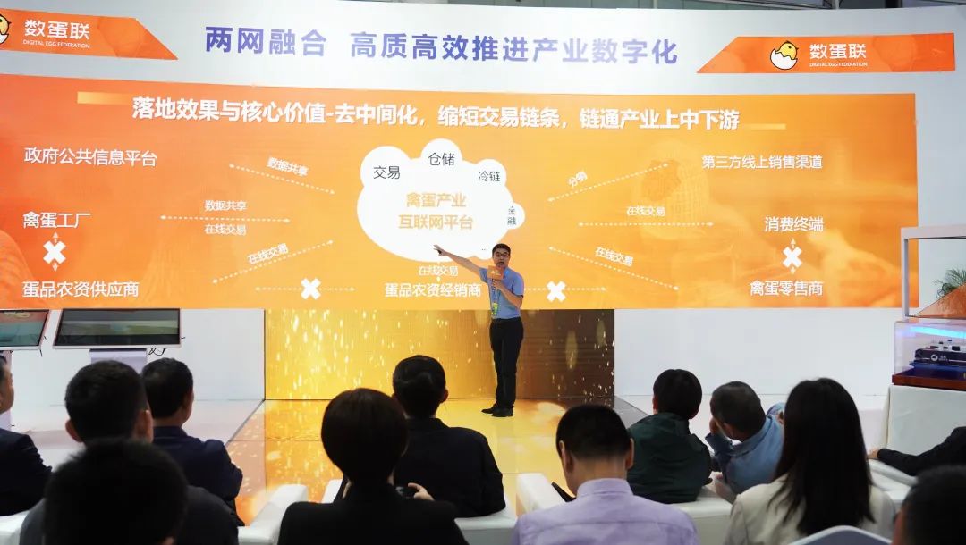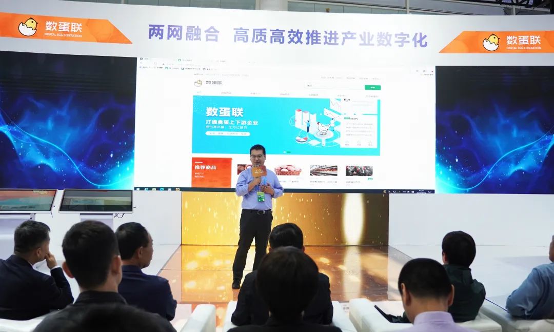 首先,数蛋联平台总经理马涛先生上台,发布数蛋联平台,并进行了数蛋联平台的具体内容讲解。他表示,在国家和地方政策的推动下,禽蛋产业要抢抓数字化发展机遇。针对养殖企业、经销商痛点,应构建禽蛋产业的“数字大厦”,通过“数智融合”实现“高质发展”,推动蛋鸡产业链的效益跃升。